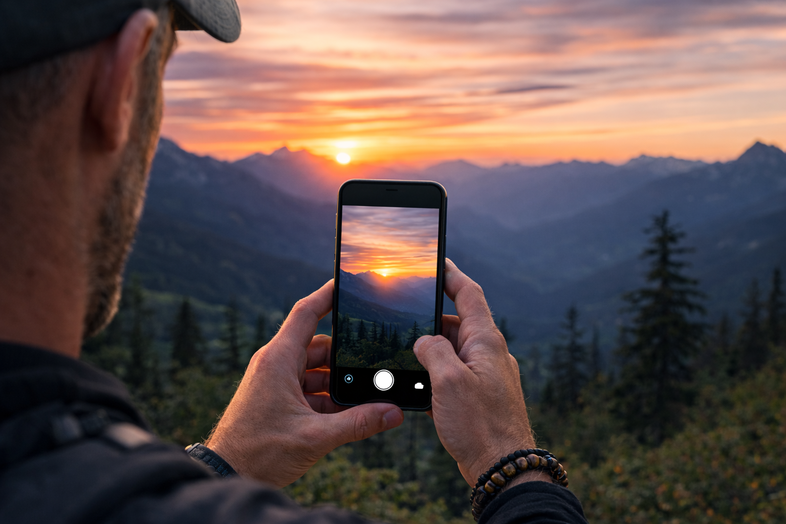 Phone cameras are designed to quickly analyze the scene and adjust exposure, color, and focus automatically. For everyday trail photos, auto mode is usually more than enough.