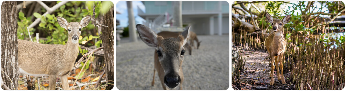 Key deer are often seen near residential areas, and while they may appear comfortable around people, they are still wild animals and should be treated as such.
